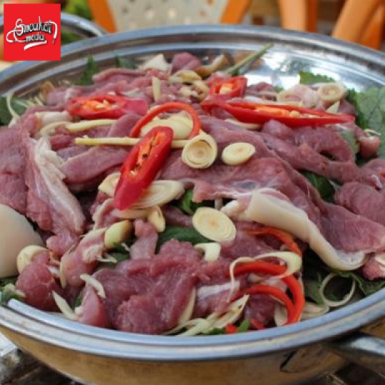 Thịt dê có thể hấp cùng lá tía tô hoặc sả. Khi ăn chấm với nước tương bần có pha thêm chút đường, ăn kèm sung muối, khế, chuối, dứa rất thanh mát.